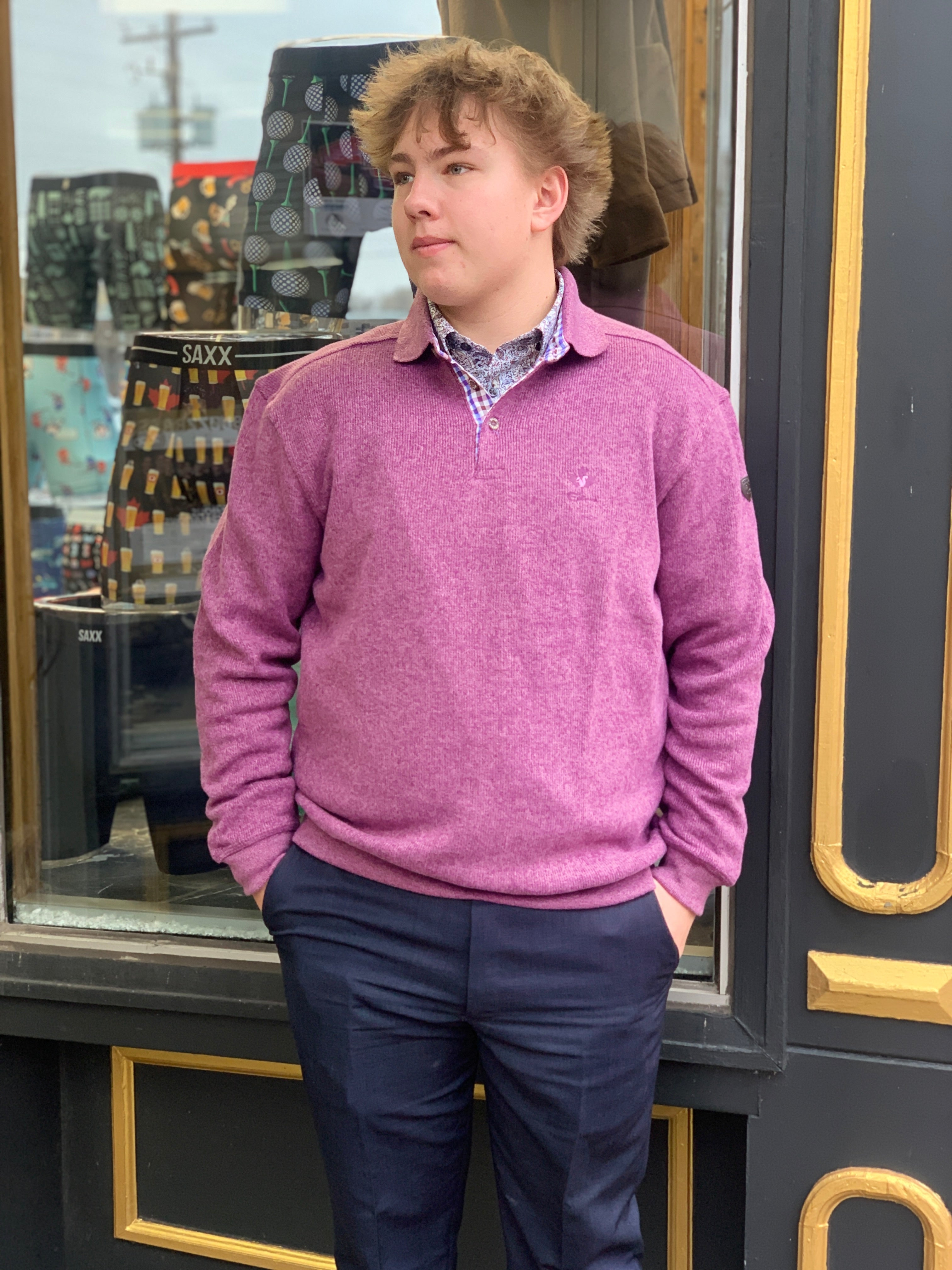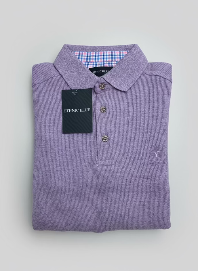 Ethnic Blue 1/4 Button Long Sleeve Knit Sweater - 20525