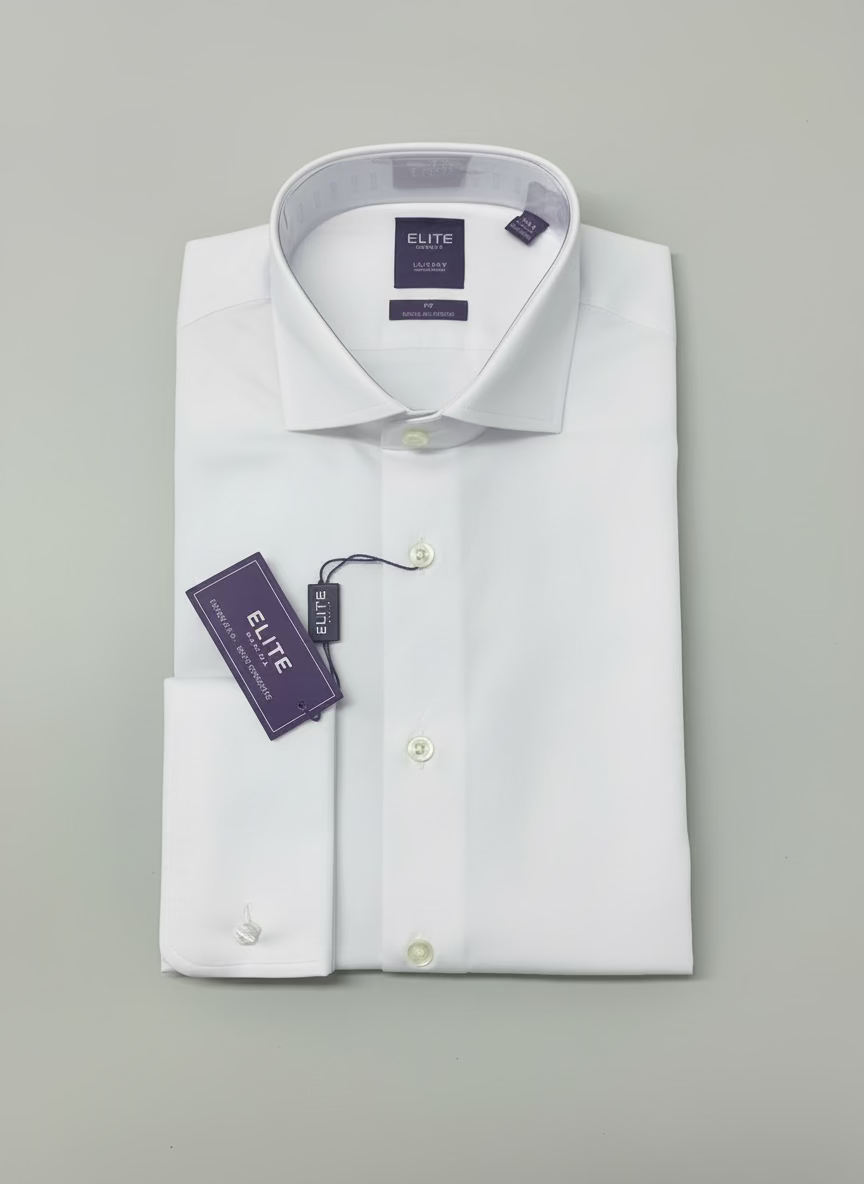 Elevate your formal wardrobe with this sophisticated tapered white dress shirt, engineered for the discerning gentleman. The refined tapered silhouette provides a contemporary fit that flatters without excess fabric, while the classic French cuffs add an unmistakable touch of elegance. Crafted with precision tailoring, this shirt transitions seamlessly from boardroom presentations to evening events. The crisp white fabric maintains its pristine appearance through repeated wear, making it an essential foundation piece for any professional's collection. Designed with the taller frame in mind, this shirt delivers the proper proportions you've been searching for.