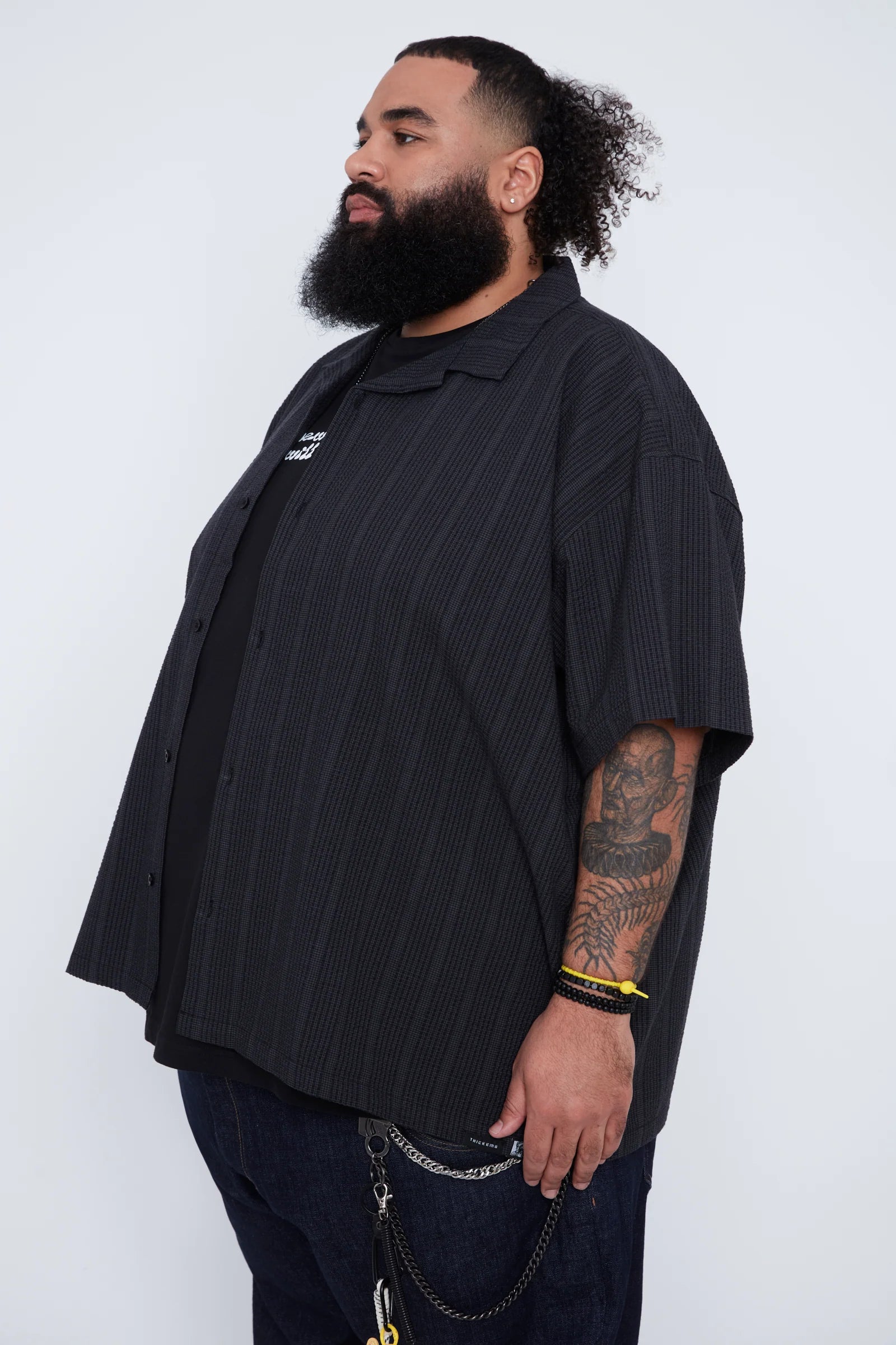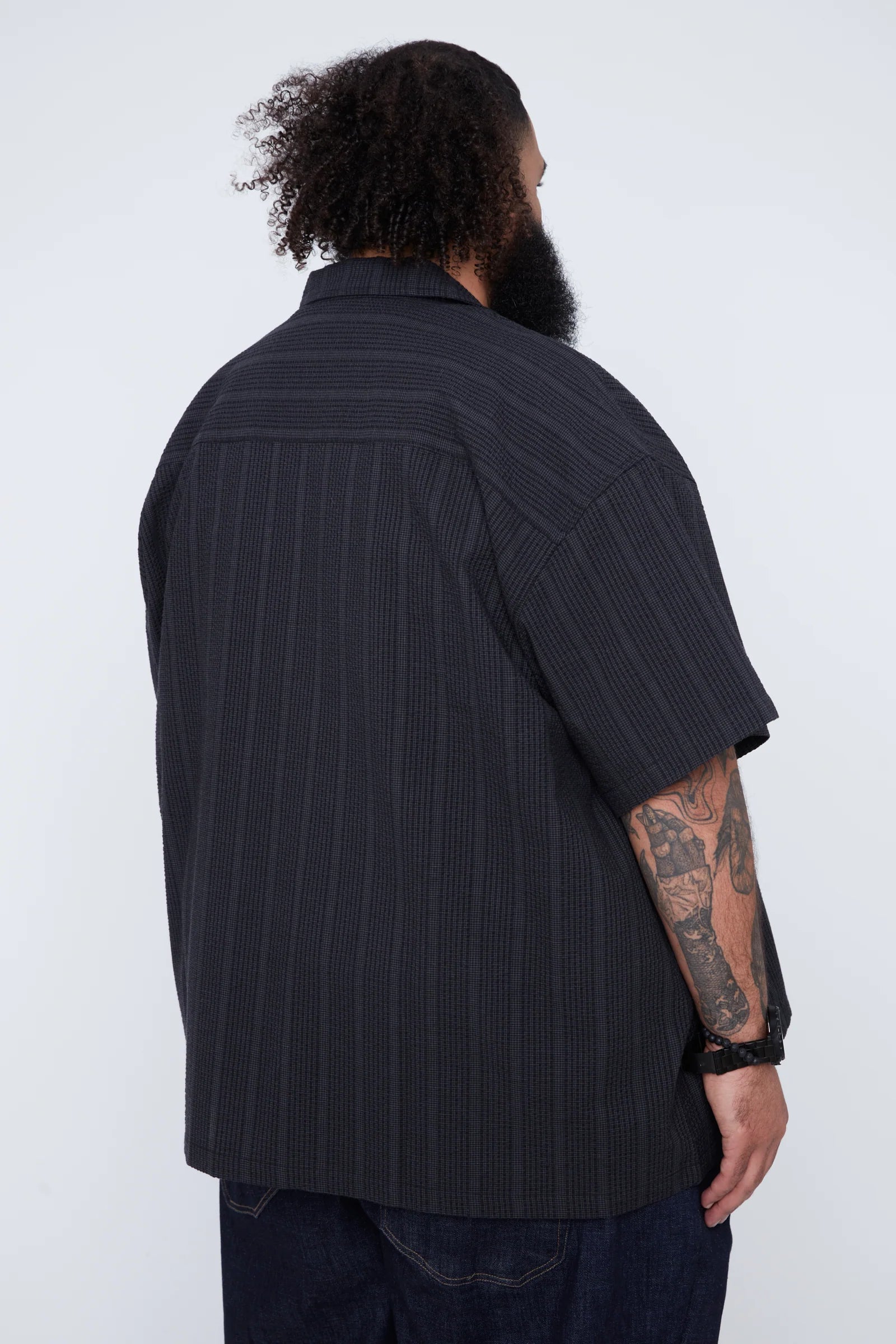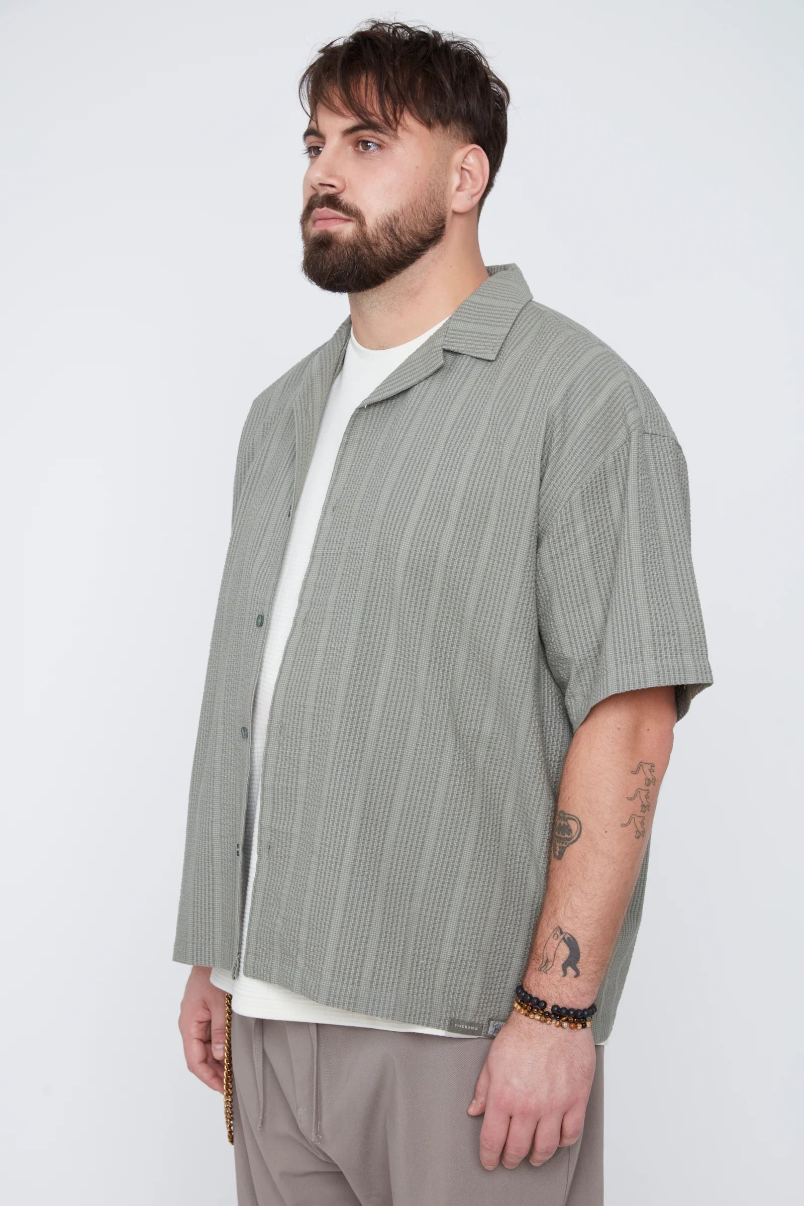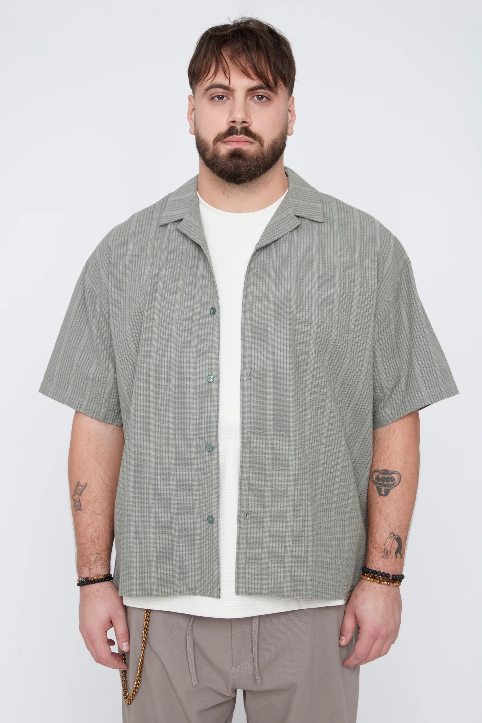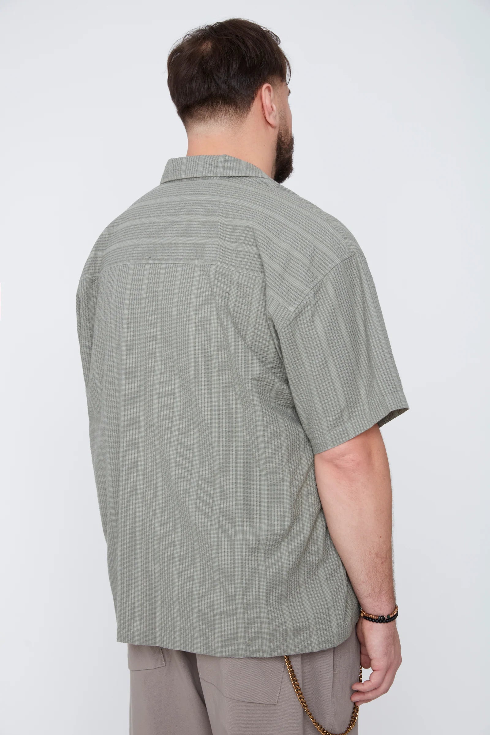 Thickems Men’s Stripe Seersucker Boxy Fit Shirt - 103808