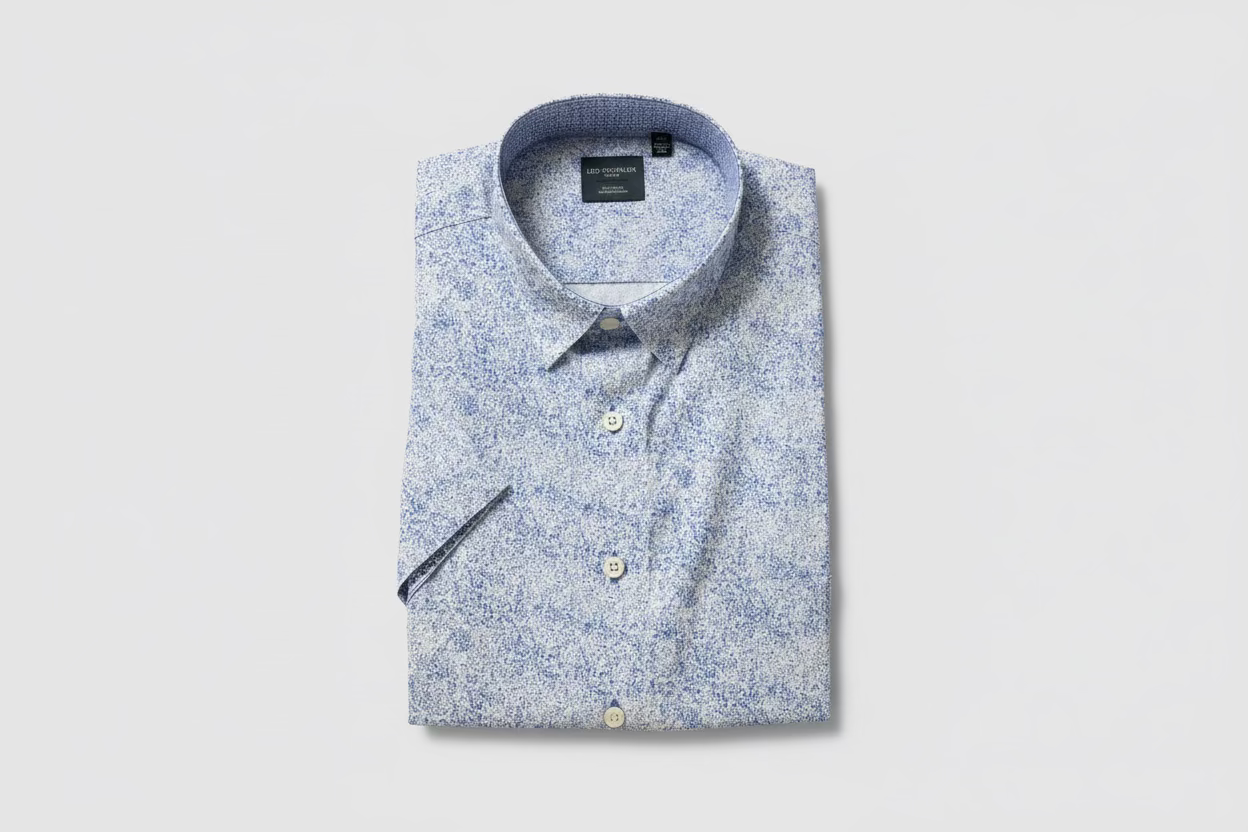 Elevate your everyday wardrobe with this Leo Chevalier light blue short sleeve dress shirt. Crafted for the modern professional, this versatile piece transitions seamlessly from office to casual settings. The crisp light blue hue pairs effortlessly with suits, chinos, or jeans, making it a reliable staple for any occasion. Built with quality construction and a refined fit, this shirt delivers comfort and style in equal measure. Perfect for business meetings, weekend outings, or layering under sweaters and blazers.