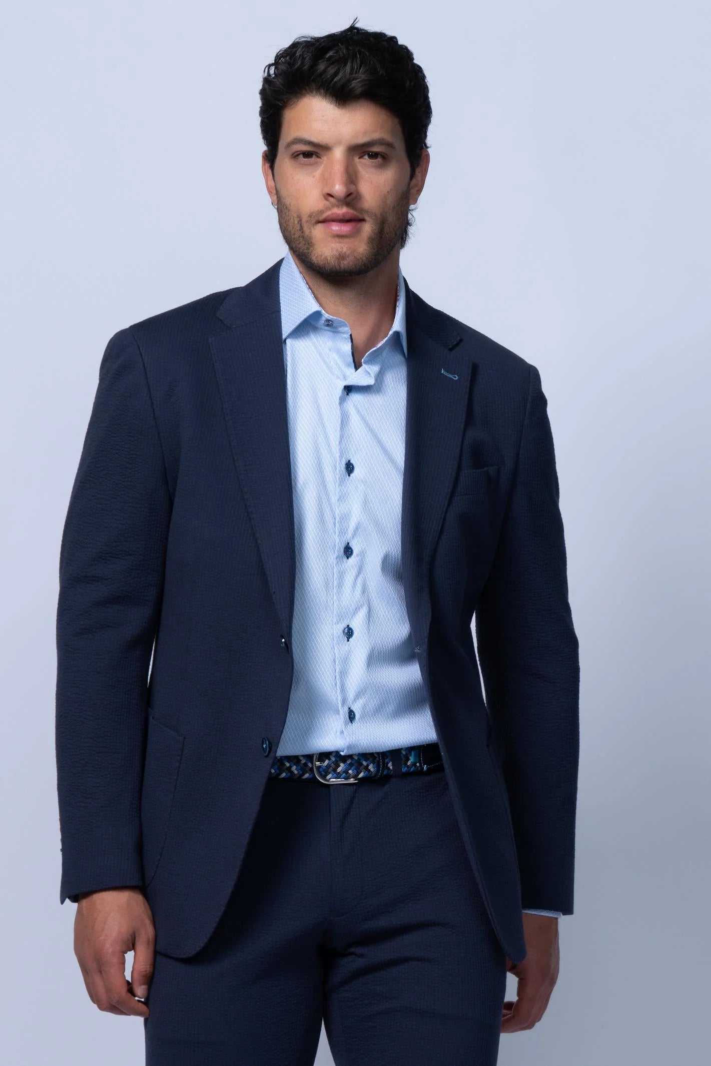 7 Downie St. Meridian Navy Stretch Cotton Seersucker