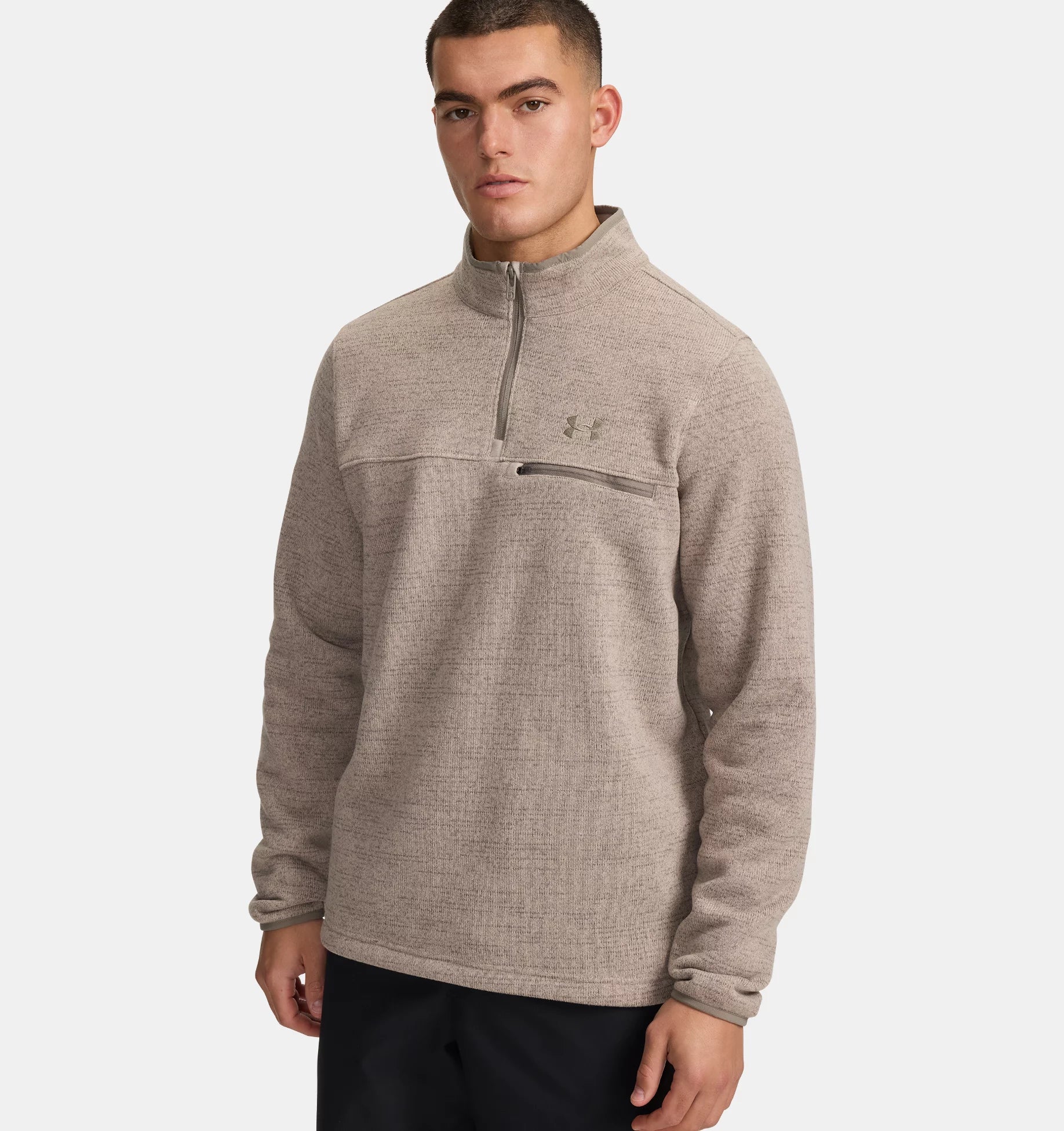 This has all the breathable warmth of a sweater, but the performance of UA fleece—so it wicks and dries. It's everything you need for the outdoors.
